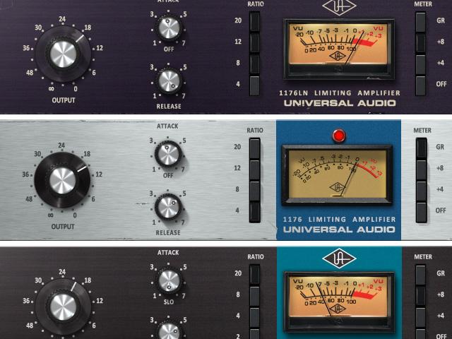 Die neue 1176 Limiter Plug-In Collection von Universal Audio stellt Anwendern drei verschiedene 1176 Produktversionen zur Verfügung, die für verschiedene Entwicklungsschritte aus über 40 Jahren Firmengeschichte stehen: Rev A "Bluestripe" repräsentiert den ursprünglichen Bill Putnam Entwurf des FET-Limiters mit höherer Verzerrung und einzigartigen FET-Eigenschaften bei der Verstärkung.