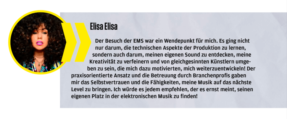 Jeder, der einmal bei uns war, weiß: Hier gibt es 100 % Support – teilweise 12 Stunden am Tag und oft weit über die Kurse und Einzelcoachings hinaus. In spätestens fünf Monaten wirst du in der Lage sein, deinen Track professionell zu produzieren und abzumischen. Mein Ziel ist es, das absolute Maximum aus jedem Schüler herauszuholen. Und wenn sie dann da oben stehen, Tausende jubeln ihnen zu, und sie sagen können: *„Ich war bei Jeyênne in der EMS“* – dann ist das für mich und die Schule das Größte.