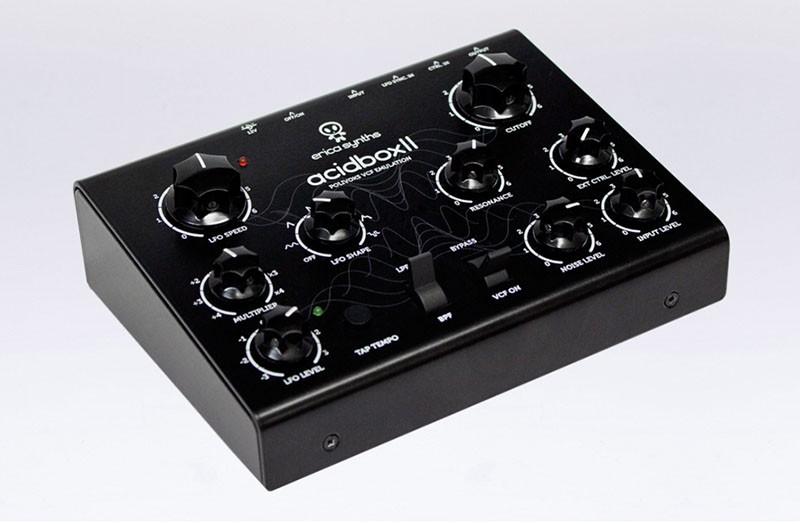 Erica Synths will in Acidbox II das VCF und die integrierte Schaltung (IC) des russischen Originalfilters nachgebildet und in ein kompaktes Format gepackt haben. Die Neufassung wurde um einen analogen Rauschgeneratoren erweitert, zudem ist der LFO inklusive sechs invertierter Wellenformen überarbeitet worden. Dieser lässt sich nicht nur extern synchronisieren, sondern verfügt auch über die Fähigkeit zur Audioraten-Modulation. Tap Tempo und symmetrische Ausgänge sind ebenso neu an Bord, wie das robuste Gehäuse, welches als offensichtlich ''Tritt-beständig'' präsentiert wird.