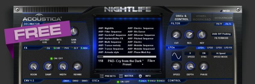 Der US-amerikanische Software-Entwickler Acoustica hat mit Nightlife einen virtuellen Synthesizer zu verschenken. Dem Namen entsprechend richtet sich der neue Synth an die Produzenten von EDM, House, Dance und Trance.