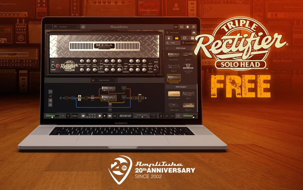 Bis zum 28.März spendiert IK Multimedia für alle registrierten Anwender von AmpliTube 5 und AmpliTube 5 CS den fetten aggressiven Verstärker MESA/Boogie Triple Rectifier Head kostenfrei. Mit im Paket der kostenlosen AmpliTube 5 Custom Shop Edition sind 42 Pedale, Amps, Cabinets, Mikrofone und Rack-Effekte.