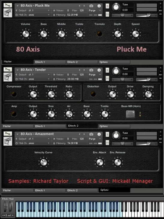 Das 2 GB große Kontakt-Instrument umfasst über 2500 Samples und 30 Presets des analogen polyphonen Synthesizer-Keyboard Akai Axis80. Ferner plant der Entwickler weitere Synth-Instrumente für Kontakt , die im November nach und nach erscheinen werden.