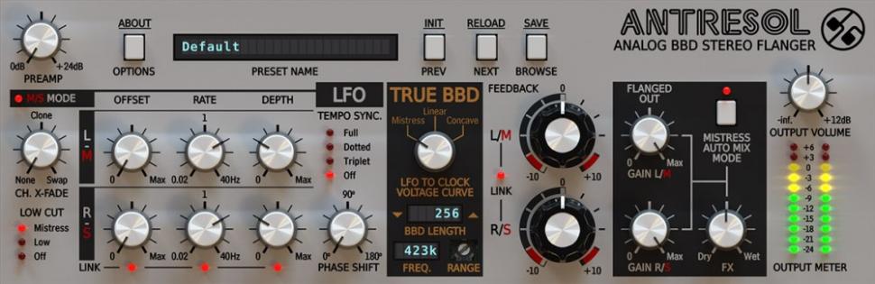 D16 Group bekam seine Inspiration aus den Effektgeräten mit der sogenannten Eimerkettenspeicher-Bauform, die gewöhnlich als Bucket Brigade Device (BBD) referiert wird. Diese basiert auf eine Verzögerungsleitung für analoge Schaltungen, die in Hall- und Echoeffekten angewendet wurde. Antresol verspricht dem Nutzer den tiefgreifenden Zugriff auf die emulierten Schaltungen, um die klanglichen Auswirkungen selbst bestimmen zu können. Das Plug-in soll jene harmonisch interagierenden Resonanzen sowie den warmen und reichhaltigen Klang des Originals präzise und Aliasing-frei nachbilden. Für jeden Stereo-Kanal werden unabhängige Parameter bereitgestellt, L/R- oder Mid/Side-Modi sind ebenfalls mit dabei. Der Misstress-Modus schaltet das Plug-in auf einen klassischen Flanger-Modus um. Der Tag-basierte Browser, drei synchronisierbare LFOs (selten bei Flanger-Effekten) und die volle MIDI-Funktionalität gehören zu den weiteren Vorteilen.