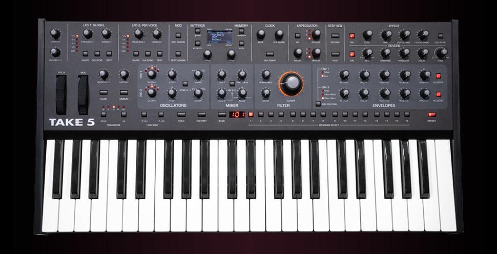In kompakter Bauweise präsentiert Sequential den Analogsynthesizer Take 5, der nicht nur äußerlich an den Sequential Pro 3 erinnert, sondern auch technisch mit dem analogen, resonanzfähigen Vier-Pol-Filter die Legende vom Prophet-5 fortführen will. Als Soundgeneratoren werden zwei Oszillatoren mit stufenlos überblendbaren Wellenformen und Suboszillator zur subtraktiven Synthese bedient. Spezifische Klänge mit FM-Synthese und Noise sind ebenfalls umsetzbar.