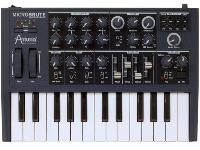 Schon kurz nach dem Start des Minibrute überrascht Arturia mit einem kleinen Bruder des erfolgreichen Synths. Wie das Original verfügt der Microbrute über die Sägezahn-, Rechteck- und Dreieck-Oszillatoren, die stufenlos gemixt und moduliert werden können. Das Steiner Parker Filter wurde übernommen, inklusive Brute Factor. Nur auf den Notch Modus wurde verzichtet, also bleiben Hoch-, Tief- und Bandpass. Auch ein LFO ist geblieben, die Hüllkurven wurde dafür auf eine geschrumpft. Der Arpeggiator wurde durch einen Sequenzer ersetzt, der frei programmierbare Patterns ermöglicht. Ein Hingucker ist die kleine modulare Modmatrix, mit der sich per CV Stecker LFO und Hüllkurve mit Modulationszielen verknüpfen lassen. Dies funktioniert sowohl intern als auch mit externen CV-kompatiblen Modulen.Preis: 329 Euro
