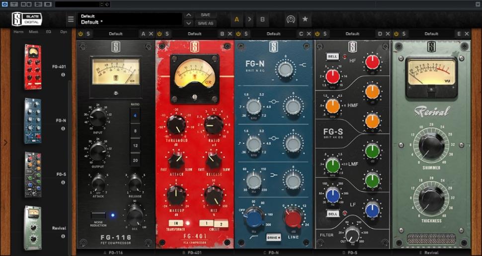 Die Eigenkreation FG-401 ist ein vielseitiger VCA-Hybrid mit zuschaltbarer Übertrageremulation und zwei unterschiedlichen Schaltkreisen, die deutlich sanfter zu Werke geht. FG-S bildet einen SSL-Equalizer der 4000er-Serie zwar inklusive der typischen Verzerrungen nach, wodurch er beispielsweise Drums, Bässen oder Gitarren den nötigen Biss geben kann. Auf der anderen Seite steht das eher soft ausgelegte FG-N-Modul, das den Neve-Equalizer 1073 emuliert nur mit einem zusätzlichen Mittenband. Seine Stärken sind sanfte, breite Bässe und seidige Höhen. Das ebenfalls sehr gelungene Freeware-Modul Revival fügt Signalen wunderbar samtige Höhen oder Fülle und Druck in den Bässen hinzu. Die Ausstattung des Racks wird durch eine Preset-Verwaltung und eine A/B-Funktion komplettiert, außerdem können alle Module per Drag & Drop frei im Signalpfad verschoben werden.