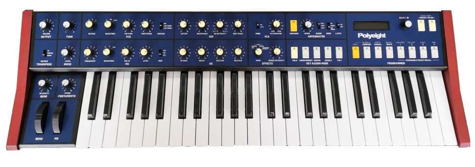 Das Erfolgsprinzip des Synthesizer-Klonens populärer Klassiker will Behringer mit dem enthüllten Prototypen Polyeight fortführen. Der einst sechsstimmige Polysix von Korg verfügte jedoch nicht über eine MIDI-Schnittstelle. Die wurde jedoch dem Polyeight inklusive USB-Verbindung mitgegeben. Der anschlagsdynamische Klangerzeuger ist zudem mit Aftertouch ausgestattet, ist aber von den Maßen her kleiner und leichter als sein Vorbild.