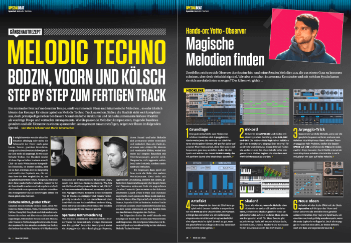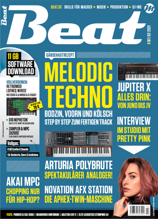 Ein minimaler Beat auf moderatem Tempo, sanft wummernde Bässe und träumerische Melodien... so oder ähnlich könnte das Konzept für einen typischen Melodic Techno Track aussehen. Sicher, die Realität sieht weit komplexer aus, doch prinzipiell genießen bei diesem Sound einfache Strukturen und Gänsehautmomente höhere Priorität als wuchtige Drops und vertrackte Arrangements. Wie Sie passende Melodien komponieren, tragende Basslines gestalten und alle Elemente zu einem spannenden Arrangement zusammenfügen, zeigen wir Ihnen in der aktuelle Beat. Gleich zugreifen!