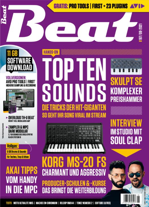 Jetzt zugreifen und Beat Ausgabe 8/21 mit 11 GB Plug-ins und Samples für 4,99 Euro im www.falkemedia-shop.de bestellen.