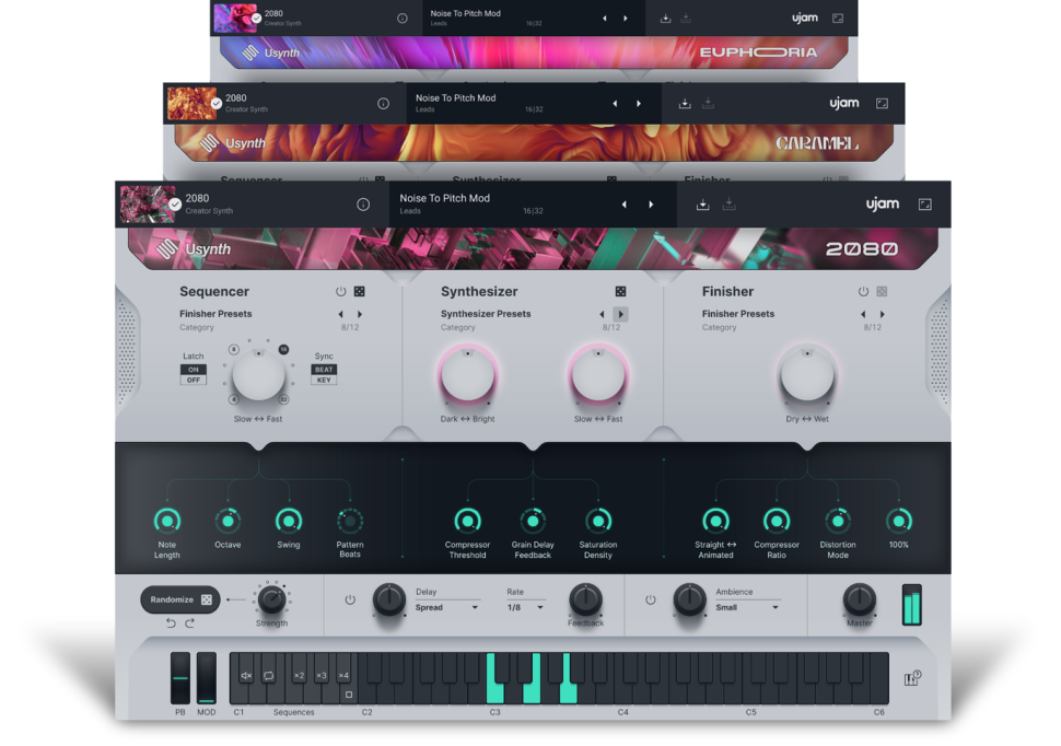 EUPHORIA ist auf moderne EDM-Musik spezialisiert, während die Präferenzen von CARAMEL auf voluminöse breite Pads gesetzt sind. 2080 soll der Synthwave-Experte sein. Anstelle detaillierter Klangbearbeitungen, soll der Anwender schnell aus vorgefertigten Klängen schöpfen, die ähnlich wie Instagram-Filter wenig Aufwand und Vorkenntnisse erfordern. Als Zielgruppe dürften vor allem Einsteiger und weniger Sounddesigner in Frage kommen.