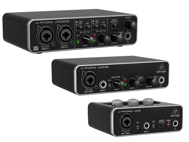 Die neue Behringer Geräte-Familie U-Phoria umfasst vier Modelle. Das Kleinste trägt den Namen UM2. Es hat einen Mikrofon-Eingang mit Xenyx-Vorverstärker sowie einen separaten Instrumentenweg an Bord. Das etwas größere Modell UM22 besitzt die gleiche Auswahl an Eingängen, hier wird allerdings auf die neuen von MIDAS designten Vorverstärker gesetzt. Ähnlich sieht es auch bei den weiteren Modellen UMC202 und UMC204 aus, allerdings sind hier gleich zwei der wohlklingenden MIDAS-Schaltungen zu finden.