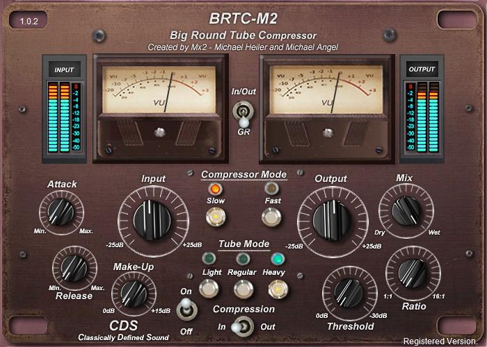 Der Hersteller wirbt mit der komplexen Modellierung analoger Schaltungen via eigens entwickelter VISC-Technologie (Virtual Interactive Signal Chain). So sei das neue Plug-in BRTC-M2 keinesfalls die Emulation eines bestimmten Vorbildes, sondern integriere die Essenz und die Eigenheiten zahlreicher analoger Klassiker. Ein einzigartiger Röhrenklang mit dem originalen Charakter soll das Ergebnis sein, anwendbar für jegliche Genres. Der BRTC-M2 bietet die Wahl zwischen zwei Kompressions-Modi - langsam oder schnell. Der Nutzer kann zudem die Art und Weise des Röhren-Klanges bestimmen: Light, Regular oder Heavy. An Steuerungs-Elementen findet man Attack, Release, Ratio, Threshold und Make-Up-Gain, Lautstärke-Regler und Mix-Möglichkeit der Ein- und Ausgangssignale sind ebenfalls dabei. Für das Vintage-Flair ist ein VU-Meter gegeben, begleitet mit der digitalen Pegelanzeige für beide Signal-Enden.
