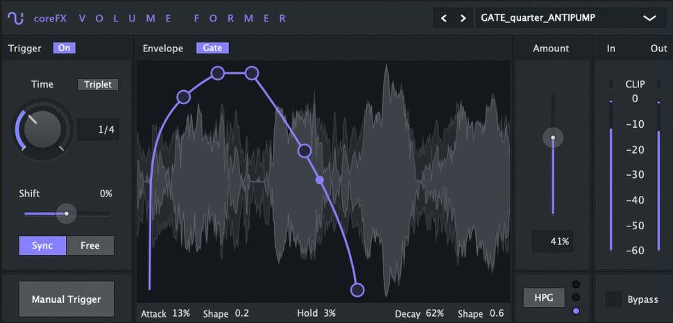 EDM, House, Trance oder Trap: Praktisch alle modernen Genres der elektronischen Musik weisen den typischen "Pump"-Effekt auf. Vergessen Sie komplexe Tutorials für das Sidechain-Routing in Ihrer DAW: Mit dem coreFX VolumeFormer können Sie den Ducking- oder Sidechain-Effekt durch rhythmische Änderungen der Lautstärke erzeugen. Modifizieren Sie Taktraster oder AHR (Attack/Hold/Release) Hüllkurven nach Ihren Wünschen und integrieren Sie den klassischen Pump-Effekt in Ihre Produktionen!