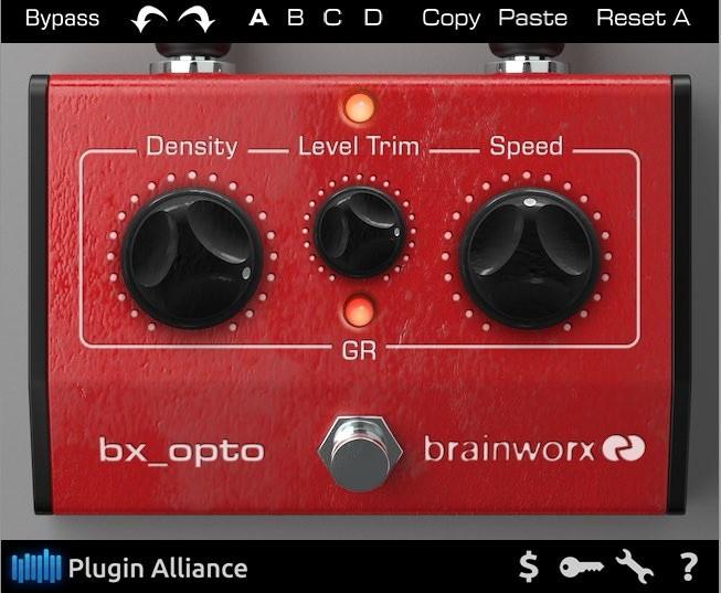 Optische Kompressoren basieren auf Lichtdioden, die je nach Steuerspannung unterschiedliche Fotowiderstände (LDR) erzeugen. Da das Verhältnis zwischen Licht und Widerstand nicht immer linear ausfällt, gelten die Opto-Kompressoren als langsam in der Release- und Attack-Phase. Brainworx möchte mit dem neuen bx-opto Plug-in Algorithmen entwickelt haben, welche die Anpassung der Geschwindigkeit des Fotowiderstandes erlauben. So werden die Transienten einzigartig beeinflusst und außergewöhnliche klangliche Qualitäten erzielt, die laut Hersteller nicht transparent, sondern Programm-abhängig und harmonisch angenehm klingen. Die aufgeräumte Benutzeroberfläche bietet einen Regler zur Kompression, einen Speed-Regler, Dry/Wet-Mix, Output-Kontrolle, einen Multimode-Side-Chain-Filter sowie ein VU-Meter als Gain-Reduktions-Anzeige. Als vereinfachte Variante dieses virtuellen Opto-Kompressors bietet der Hersteller das bx-opto Pedal im Stompbox-Format, das dieselben Schaltungen mit wenigeren Steuermöglichkeiten (Density, Speed, Output) bereitstellt.