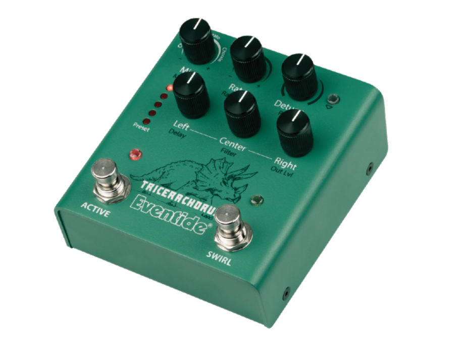 Im Rahmen der dot9-Serie verkündet Eventide die Veröffentlichung ihres vierten Effektpedals, dem TriceraChorus. Mit dem Pedal sollen sich nicht nur Gitarristen, sondern auch Sänger oder Keyboarder angesprochen fühlen. Bei der Entwicklung inspirierte sich der Hersteller am klassischen Tri-Stereo-Chorus und Stompbox-Chorus der 1970er und frühen 1980er Jahre. TriceraChorus verfügt mit links, mitte, rechts über drei Chorusstimmen, sowie über drei Chorus-Typen Chorus, Vibrato, Chorale.