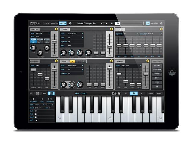 Cakewalk's Synth steht schon lange bei vielen auf der Bestenliste und hat sich bereits einen Namen als Klassiker gesichert. Dass der Z3TA+ nun auch für die mobile iOS Welt erhältlich ist, scheint ein konsequenter Schritt zu sein. Die Engine des Plug-ins wurde vollständig übernommen: Jeweils 6 Wavetable-Oszillatoren, LFOs und Hüllkurven, sowie zwei Filter und zahlreiche Effekte können via Modmatrix miteinander verknüft und moduliert werden. Neu ist die Performance Sektion mit Keyboard, einem XY Pad und virtuellen Mod-Wheels. Wer nicht selbst basteln möchte, schöpft aus den 500 mitgelieferten Presets. Preis: 18 Euro