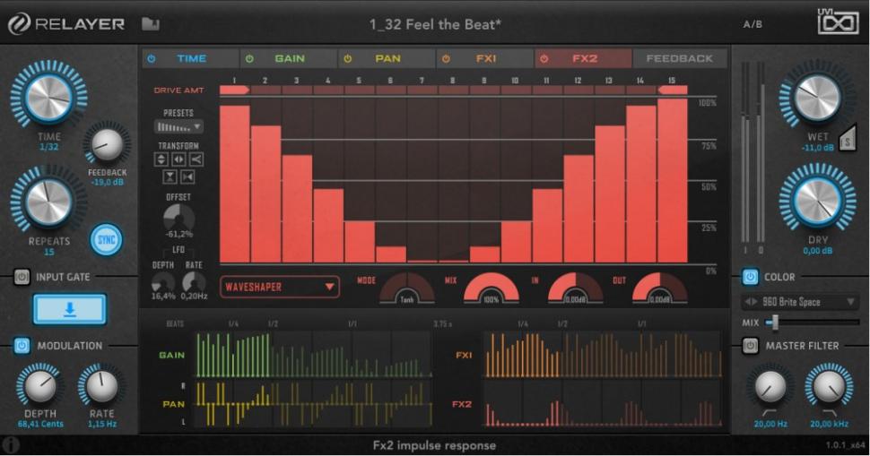 Mit charaktervollem Sound, immenser Flexibilität und hohem Bedienkomfort platziert sich Relayer selbstbewusst an der Spitze der Delay-Plug-ins. Dank präzise modulierbarer Parameter sind nicht nur klassische Echo-Effekte möglich. Vielmehr können Sie das Delay-Signal auch rhythmisch filtern, verzerren, mit Stottereffekten belegen oder mit einem klangfärbenden Nachhall versehen. Ein innovatives und inspirierendes Kreativwerkzeug mit schier unerschöpflichem Kreativpotenzial.