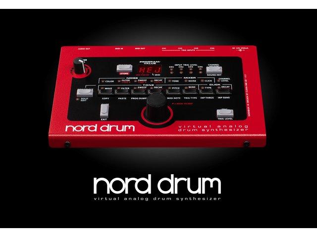 Auf der diesjährigen NAMM stellt Clavia den analogen Drum-Synthesizer Nord Drum vor, der neben großartig klingenden Drums auch konkurrenzlose Spielbarkeit verspricht. Außerdem sollen auch für Klangschrauber genügend Editiermöglichkeiten vorhanden sein. Mehrere Eingänge sowie MIDI-In/Out sind vorhanden.