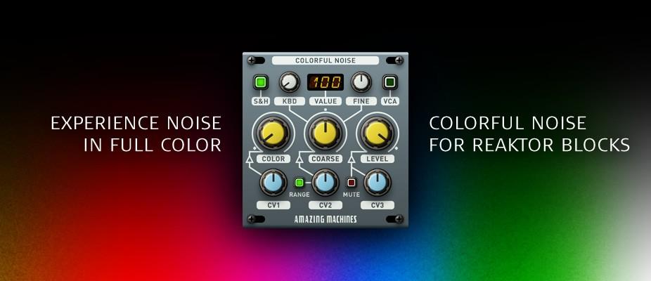 Colorful Noise nennt sich die Neuentwicklung von Amazing Machines, der als ein eigenständiges Block-Modul den NI Reaktor um ein ''farbenfrohes'' Rauschen bereichern möchte. Seit Version 6 ist Reaktor bekanntlich auf das Baukasten-Prinzip ''Blocks'' umgestiegen, das den Traum vom eigenen Modular-System wahrwerden lässt.