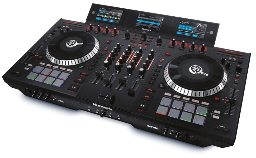 Numark hat pünktlich zur NAMM den neuen Edelcontroller NS7III fertiggestellt. Er ist in erster Linie auf die Software Serato DJ zugeschnitten und macht vier Decks beziehungsweise Kanäle zugänglich. Wichtigste Neuerung gegenüber dem Vorgänger sind drei hochauflösende 4,3 Zoll Farbdisplays. Die beiden äußeren Bildschirme geben Auskunft über Decks, Effekte, etc. Das mittig angebrachte Display übernimmt die Browser-Funktion. Dedizierte Bedienelemente ermöglichen die Suche nach Tracks und dem anschließenden Laden. Als weitere Features hat der NS7III motorisierte Platter mit Vinyl-Feeling, einen vier-kanaligen Audiomixer, berührungsempfindliche Regler und 16 Performance-Pads mit mehreren Betriebsmodi dabei. Serato DJ ist im Lieferumfang enthalten, dank Unterstützung von Noise Map kann der Neue auch in DVS-Setups eingebunden werden.