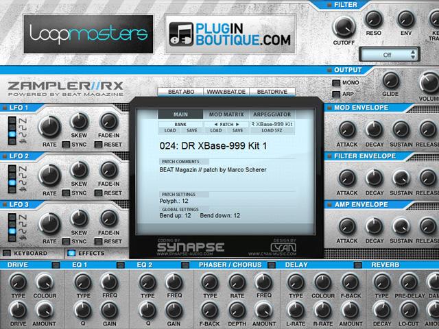 In punkto Klang und Ausstattung kann der Zampler schon seit dem ersten Tag mit gängigen Samplern mithalten, trumpft er doch trotz umfangreicher Ausstattung auf Basis des Dune Synthesizers mit einfacher Bedienung auf. Neben REX-Loop- und SFZ-fähigen Sample-Oszillatoren bietet der Zampler//RX eine Klangformung vom Feinsten: Im integrierten Multimode-Filter stehen die Typen Tief-, Hoch-, Bandpass und Bandsperre sowie verschiedene Kombinationen daraus zur Auswahl. Und drei LFOs, drei ADSR-Hüllkurven sowie eine komplexe Modulations-Matrix bringen Leben in die Sounds.