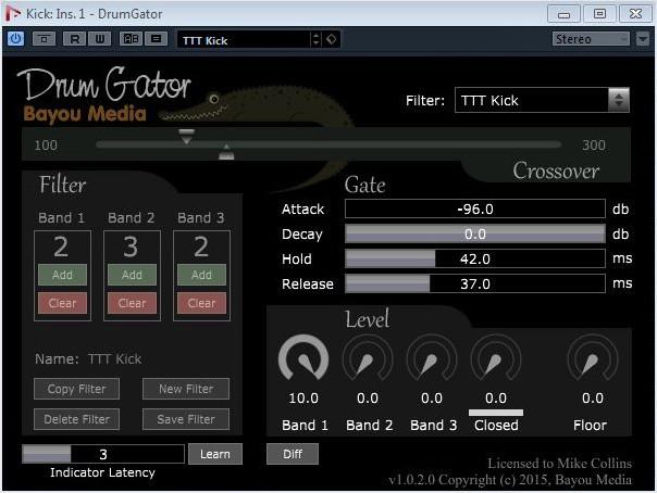 Drum Gator will die traditionellen Noise Gate-Effekte überlisten und deren Pegel-basierten Nebenwirkungen beseitigen. Das Plug-in arbeitet mit einer Kombination aus Spitzenwert-Erkennung und Spektralanalyse, um unerwünschte Frequenzen zu eliminieren. Dabei soll das Tool den Drum-Schlag mit seinen Transienten erkennen und auf den drei Bändern des Frequenzspektrums abbilden, die jeweils mit einer eigenen Pegel-Kontrolle ausgestattet sind. Zudem gibt es für vielfältige Perkussiv-Klänge spezielle Lern-Algorithmen. Auf diese Weise kann das Tool die unterschiedlichen spektralen Eigenschaften erfassen, analysieren und durch individuelle Bearbeitung die unerwünschten Frequenzen entfernen, ohne das gesamte Material zu beeinflussen.