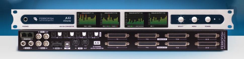 Das deutsche Unternehmen Ferrofish hat soeben den AD/DA-Wandler A32 DANTE vorgestellt, der das Vorgänger-Modell A32 ablöst.