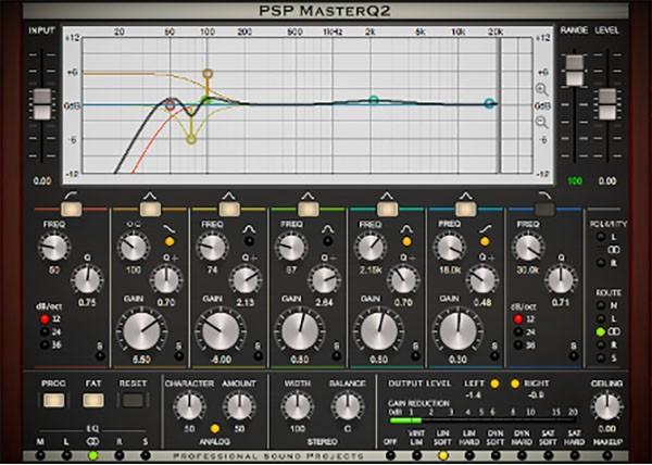 PSP MasterQ2 steht für die hohe Qualität ein, indem es die Sampling Rate von 44,1 bis zu 192 kHz unterstützt. Seine sieben Filter versprechen vielfältige Eingriffe in die Signalbearbeitung. Die Filter Low Cut und High Cut arbeiten mit den Flankensteilheiten von 12, 24, 36 dB/Oktave, Low Shelf und High Shelf können in den Peak-Filter-Modus geschaltet werden. Die graphische Darstellung des Equalizers bietet nicht nur den Überblick über den Verlauf der EQ-Kurve, sondern auch über die Individuellen Charakteristika des jeweiligen Filters. Neben der ausgiebigen Filtersektion bietet das Plug-in Limiting- und Soft-Clipping-Algorithmen um die Übersteuerung zu vermeiden.
