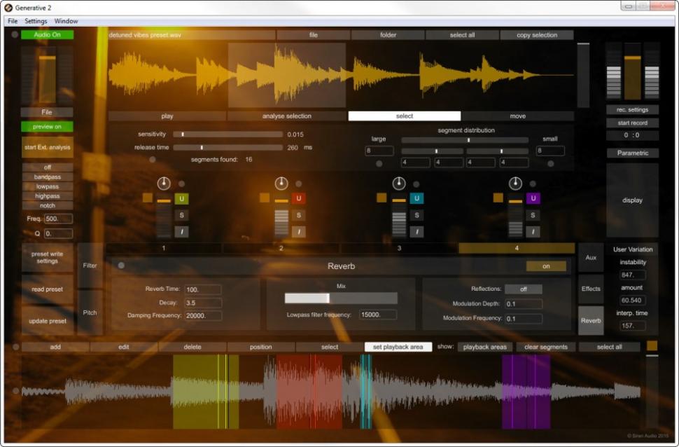 Generative 2 steht für lebendige Geräuschkulissen im Ambient-Stil. Die Standalone-Anwendung erzeugt mittels Granularsynthese spannende Soundscapes auf Basis von Samples oder live aus einem Audiosignal, etwa von Mikrofon oder Synthesizer.