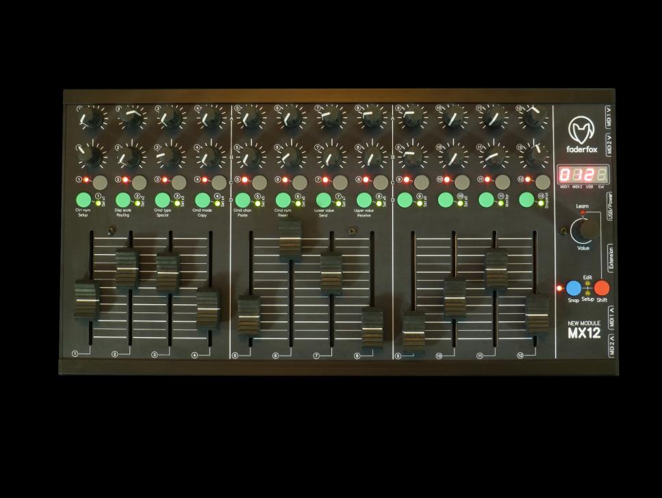 Faderfox MX12 und PC12 sind zwei MIDI-Controller, die auf die schwedische Drum Machine Elektron Analog Rytm (zum Testbericht) spezialisiert sind, aber natürlich auch als konventionelle USB-MIDI-Controller mit allerhand Synthesizern, DAWs etc. zusammenspielen. Der Formfaktor gleicht den der Elektron-Box Analog Rytm, die Bedienelemente – Drehpotis, Fader, Buttons – sind zudem für die Steuerung des Analog Rytm vorkonfiguriert (Skript für Ableton Live und Analog Rytm enthalten). Das Design beider Produkte basiert auf einem 12-Track-Layout, da der Analog Rytm mit 12 Instrumenten arbeitet.
