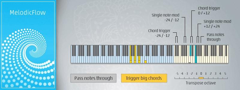 MelodicFlow als VSTi-Plug-in arbeitet mit allen gängigen DAWs zusammen. Das Konzept und die Arbeitsweise wird als simpel bezeichnet: das Plug-in wird auf einer Spur in einer DAW geladen und mit einem Instrument verbunden. Jetzt können die Noten entweder aus einem Keyboard oder aus der Tastatur eingegeben werden. Stammen die Akkorde von der unteren Hälfte der Tastatur, werden diese nicht ertönen, sondern als ''action notes'' gespeichert. Werden die oberen weißen Tasten angespielt, kann der Nutzer Arpeggios und rhythmische Melodien kreieren. Hier sind unterschiedliche Hilfen gegeben: ''C-6'' wiederholt stets die erste Note des aktuellen Akkords als Playback während ''D-6'' eine zweite Note antriggert. Weitere spezielle Tasten lassen ganze Akkorde reproduzieren, transponieren und Skalen ändern.