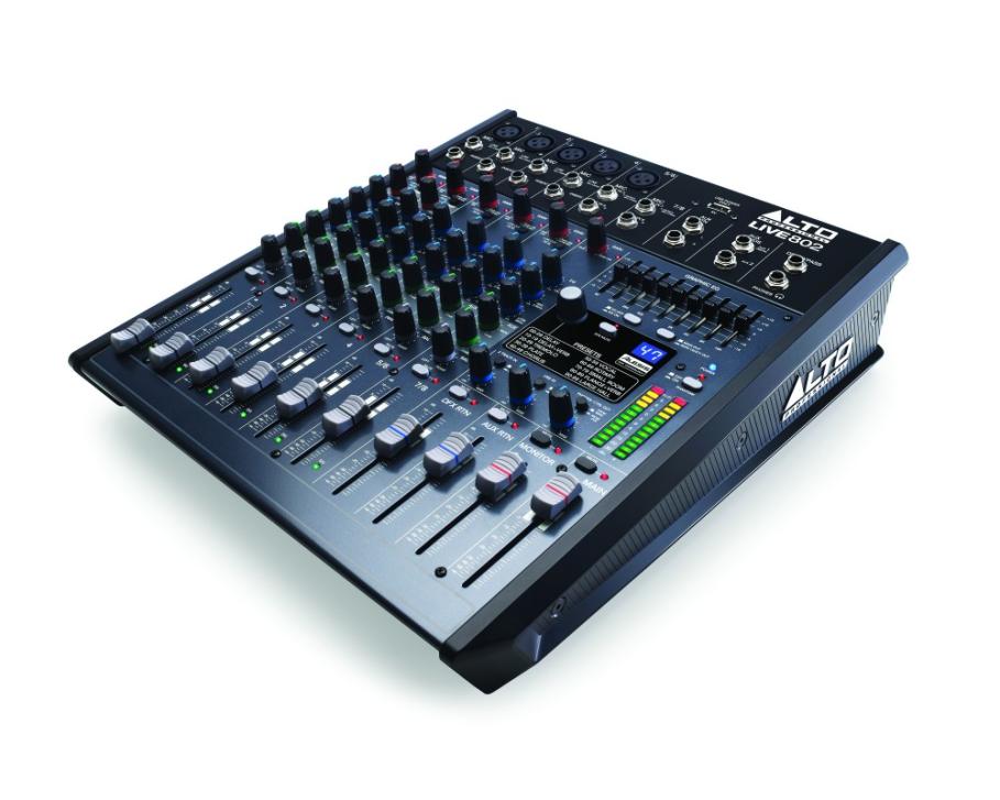 Alto Professional hat die Verfügbarkeit einer neuen Mischpult-Serie für Bühnen und Heimstudio-Anwendungen bekanntgegeben. Die Live genannte Produktfamilie teilt sich in vier Geräte auf, im Einzelnen zwei kleine Zwei-Bus-Modelle mit acht beziehungsweise zwölf Kanälen (802/1202) und zwei große Vier-Buss-Varianten mit 16 beziehungsweise 24 Kanälen (1604/2404). Alle Mixer besitzen DNA-Mikrofonvorverstärker, die Anzahl schwankt zwischen fünf und 18 Stück. Für Dynamikanpassungen gibt es zwei bis acht Kompressoren, externes Equipment lässt sich über Insert-Wege einschleifen. Die Equalizer der Live-Serie setzen sich aus drei Bändern zusammen, bei den beiden großen Pulten sind die Mitten stimmbar. Des weiteren hat Alto zwei bis vier Auxwege eingebaut, die Lautstärke von Kanälen und Summe wird über 60-mm-Fader geregelt. Weitere Features umfassen Mute- und PFL-/AFL-Solo-Taster sowie eine zuschaltbare 48-Volt-Phantomspeisung für die Mikrofon-Vorverstärker, zur Klangveredelung sind ferner Grafik-EQs mit neun Bändern und DSP-Multieffekte von Alesis an Bord. Summensignale können nicht nur analog über Line- und Kopfhörerwege, sondern auch digital mittels USB-Anschluss ausgegeben werden.
