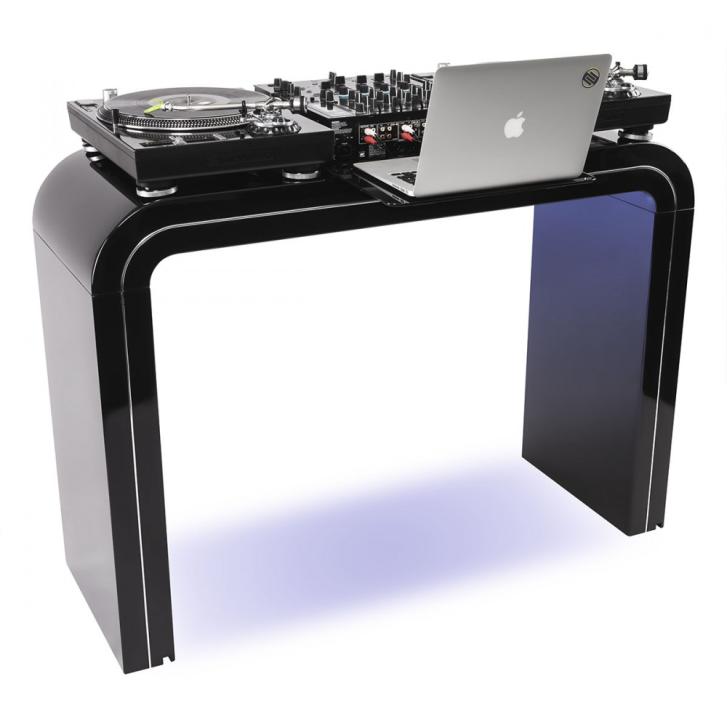 Mit den Maßen von 1250 x450 x 900 mm und der breit stehenden Bauweise soll der Session Cube einen sicheren Stand, ausreichen Platz für ein klassisches DJ-Set und eine optimale Arbeitshöhe bieten. Durch die Konstruktion aus Oberteil und zwei Standfüßen wird der DJ-Tisch schnell aufgebaut sein, die innere Kabelführung und integrierte Anschlussmulde umgehen den Kabelsalat. Die MDF-Konstruktion mit geschwungenem Design und Klavierlack-Finish wird um eine LED-Beleuchtung unterstützt, die Farbauswahl lässt sich per Fernbedienung steuern.