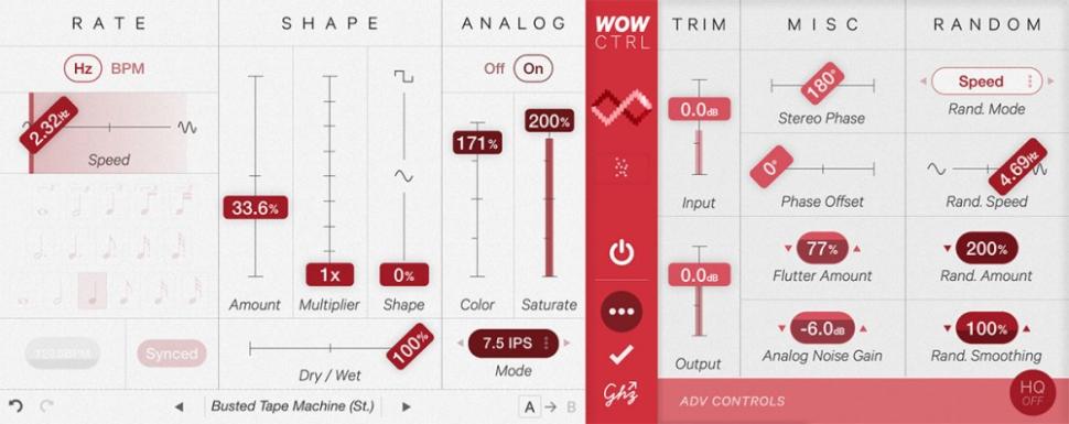 Für den virtuellen Effekt will der Hersteller drei Bandmaschinen (15 IPS, 7.5 IPS, Kassette) mit all ihren Gleichlaufs- und Tonhöhenschwankungen modelliert haben. Zur Klangmanipulation wurden Steuer-Instanzen wie Geschwindigkeit, Shape (Tonhöhe), Beat-Sync und Phasen-Kontrolle hinzugefügt. Für die typische Klangfarbe und Sättigung á la Bandmaschine ist eine dedizierte Abteilung namens Analog an Bord, die sogenannte Random-Sektion soll zudem komplexe Modulationen bieten.