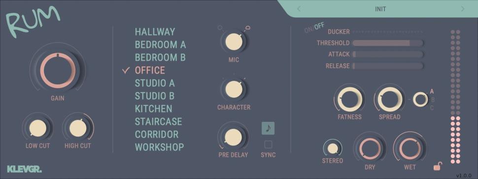 Die schwedischen Plug-in-Entwickler von Klevgränd sind für ihre unkonventionellen Studiowerkzeuge bekannt. Keine Ausnahme macht das neue schlicht, aber modern gestaltete Hall-Plugin Rum. Die Spezialität besteht darin akustisch behandelten Studiokabinen bis hin zu Räumen in einem normalen Zuhause nachzubilden. Auf Kathedralen mit endlos langen Hallfahnen sind hier nicht zu erwarten, vielmehr konzentriert sich Rum auf kleinere Räume wie Schlafzimmer, Büros, Korridore und Flure, die auch für Post-Production von Vorteil sind.