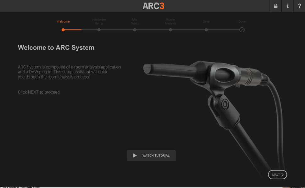 Bevor du das Korrektursystem nutzen kannst, musst du deinen Studioraum mithilfe der ARC3-Software, eines Messmikrofons sowie deiner Monitorboxen ausmessen. Bei der Installation hilft der Authorization-Manager von IK-Multimedia. Starte die Software und führe die nachfolgenden Schritte aus.