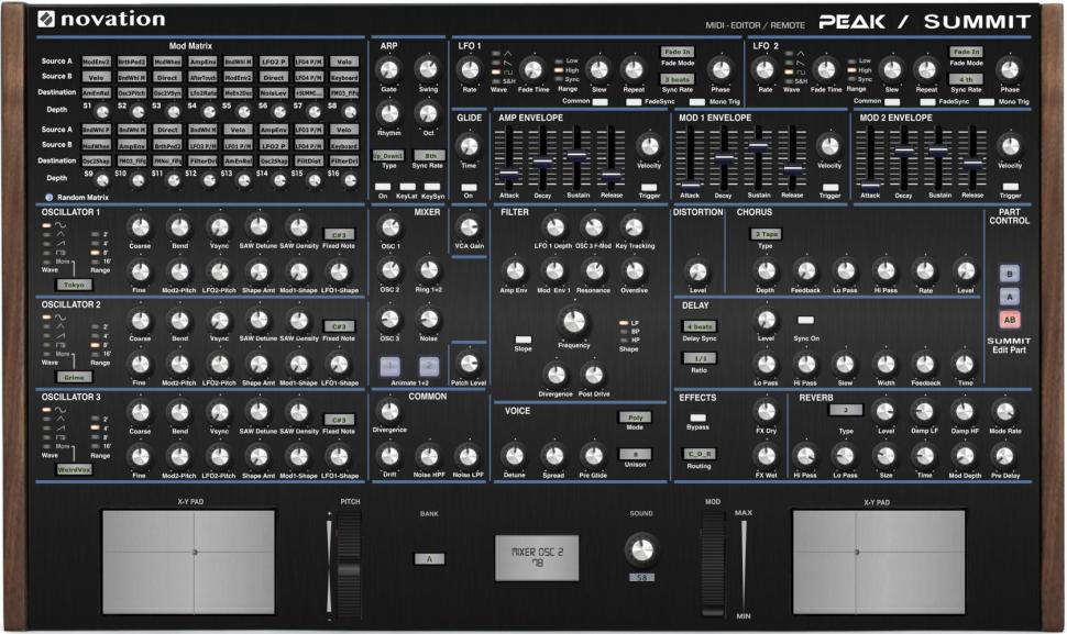 Sogar für die iOS-Edition von Ableton Live gibt es von Momo Müller einen spezifischen MIDI-Editor. Als neuestes Werk gibt es für den Synthesizer Peak und Summit von Novation einen dedizierten Editor. Damit lässt sich jeder Parameter von der Hardware steuern. Mithilfe der XY-Pads sind sogar mehrere Regler simultan kontrollierbar. Mangelt es an klanglichen Ideen, kann auch ein Zufallsgenerator bemüht werden. Anstelle der Suche durch diverse Untermenüs bieten die Editoren direkten Zugriff auf alle Funktionen.