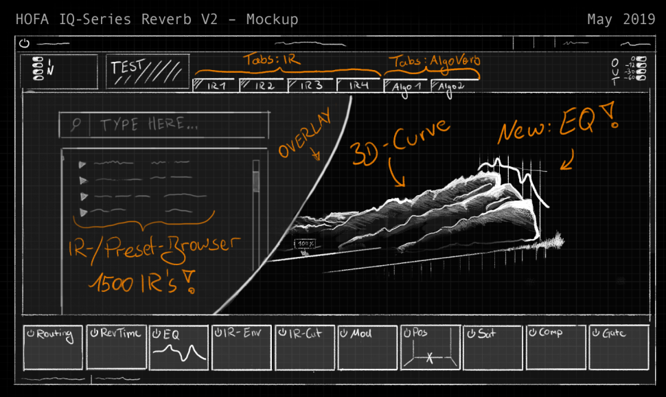 HOFA hat seinen Hallboliden IQ-Series Reverb mit der neuen Version 2 deutlich erweitert. Umfangreich gestaltet sich vor allem die Sammlung von über 1.500 Impulsantworten (IRs), die sich bei Bedarf durch zusätzliche IR-Packs ausbauen lässt. Die Impulsantworten umfassen unzählige natürliche und synthetische Räume sowie hybride Varianten in Stereo und True-Stereo. Je nach Anwendungsbereich erleichtern intelligente Filtermechanismen im Browser die Suche nach einem passenden Hall.