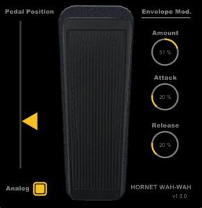 HoRNet will den Sound eines Vintage-Vertreters detailgetreu nachgebildet haben, angefangen vom Schaltungs-Diagramm und seine Simulation bis hin zum Response-Verhalten. Die Benutzeroberfläche zeigt ein Pedal, dessen Position (oder Pedaldruck) mit einem Pfeil angezeigt wird. Dahinter werkelt ein resonantes Bandpass-Filter, das je nach Pedaldruck Resonanz-Frequenzen ändert und Wah-Effekte erzeugt. Ferner ist eine analoge Sättigung hinzugekommen sowie eine unabhängige Steuerung durch Attack und Release. Diese sollen nicht nur den automatischen Wah-Effekt erzielen, sondern vielfältige Ergebnisse sichern.