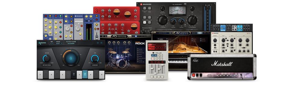 Im Bundle enthalten sind der Vocaleffekt Auto-Tune Access von Antares, sowie der Hall LX480 Essentials von Relab und der Marshall-Klon Silver Jubilee 2555 von Softube. Hinzu kommen die Instrumente Plugins XLN Addictive Keys und XLN Addictive Drums 2: Studio Rock Kit, die für knackige Drums und ausdrucksstarke Keyboardsounds sorgen sollen. Von Brainworx kann man sich an den Tools bx_oberhausen, bx_console Focusrite SC und bx_masterdesk erfreuen. Außerdem wird die hauseigene Red 2 & 3 Plug-in Suite mitgeliefert, die sich aus Equalizer und Kompressor zusammensetzt.