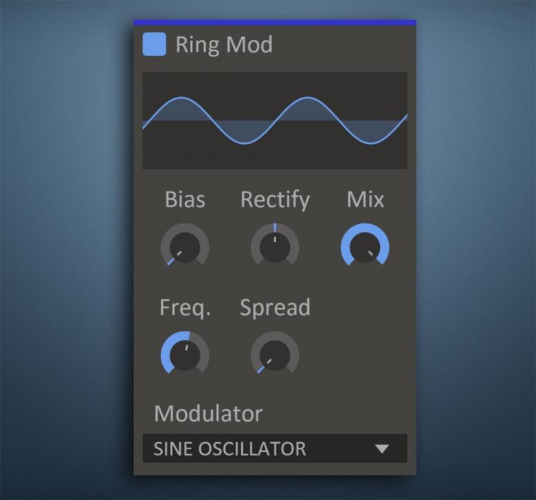 Wie auch andere Snapins übernimmt Ring Mod nur eine einzelne Aufgabe - die Ringmodulation. Um das Modulations-Signal zu generieren, welche aus zwei Wechselsignalen bestehen und bekanntlich zu unharmonischen und glockenähnlichen Klangergebnissen führen, bedient sich Ring Mod zweier Modi. Entweder werden der interne Oszillator mit einer Sinuswelle und Noise angezapft oder es wird eine externe Signal-Quelle eingespeist. Der Nutzer kann die Tonhöhe des internen Klangerzeugers bestimmen, mit der Spread-Funktion Stereo-Effekte erzielen oder die externe Modulationsquelle verzerren bzw. korrigieren (Bias bzw. Rectify). Das Dry/Wet-Mischverhältnis steht für beide Instanzen zur Verfügung.