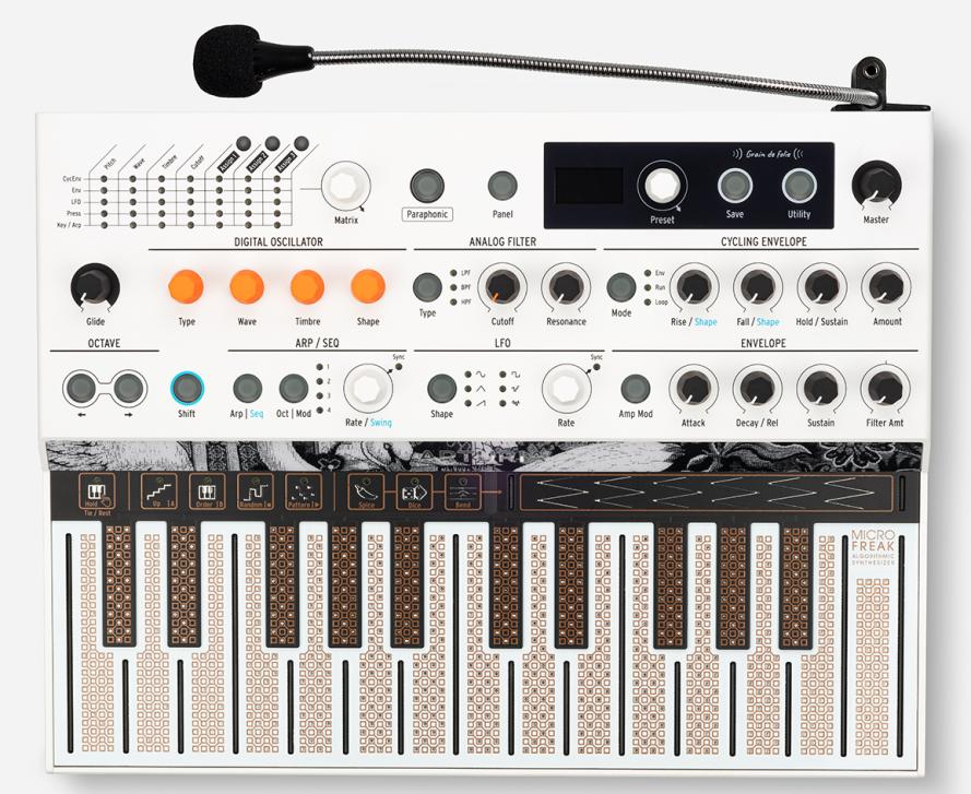 Kinder der Neunziger erinnern sich vielleicht noch an das legendäre 2.8 Update für den Access Virus A. Denn plötzlich hatte der Synth einen Vocoder am Start, was eine kleine Sensation war. So ähnlich verhält es sich mit der aktuellen Firmware des MicroFreak, denn Arturia überrascht ebenfalls mal einfach so mit einem Vocoder für den kleinen Alleskönner. Die neue Edition wird mit einem praktischen Schwanenhals-Mikrofon ausgeliefert, das an den Kopfhörer-Ausgang angeschlossen wir.