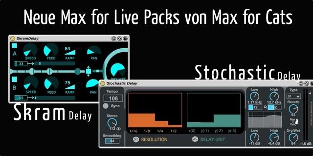 Skram Delay ist ein zweikanaliger Delay-Effekt, dessen Kanäle unabhängig oder verlinkt modulierte Echos erzeugen. Das Max4Live-Gerät steht für charaktervolle Delay-Effekte und wird als idealer Partner für unberechenbare Glitch-Sounds beworben. Neben den drastischen Effekten sind aber auch subtile Slap-Back-Delays oder einfache Echos möglich. Stochastic Delay ist die zweite Veröffentlichung und verfügt über zwei unabhängige Delay-Engines, die auf stochastischer Ebene arbeiten. Zwei nachgeschaltete Equalizer, ein Reverb sowie temposynchrone oder freie Delay-Effekte runden die Ausstattung ab. Beide Max4Live-Geräte sind vorgemappt und einsatzbereit für Ableton Push.
