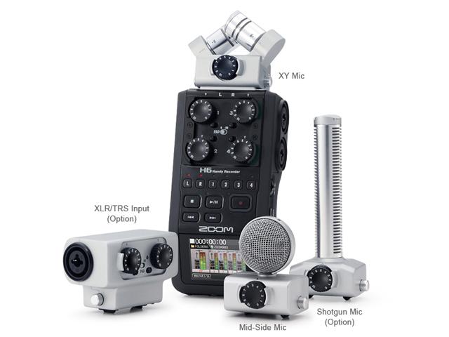 Der H6 von Zoom ist der erste portable Audiorekorder mit austauschbarem Mikrofon-System. Ab Werk bringt das Gerät einen X/Y-Aufbau mit. Er findet, wie gewohnt, oben am Gehäuse Platz, lässt sich einfach lösen und gegen andere Varianten austauschen. Im Einzelnen werden eine XLR/TRS-Kombination sowie MS- und Richtmikrofone verfügbar sein. Über fest eingebaute XLR-Klinken-Kombibuchsen sind vier weitere Mikros oder Zuspieler anschließbar. Insgesamt kommt man so auf sechs gleichzeitig nutzbare Kanäle. Die maximale Auflösung soll bei 24 Bit und 96 kHz liegen. Zur Speicherung wird der H6 bis zu 128 GB große SDXC-Karten nutzen. Bereits die Verarbeitung unseres Vorserienmodells konnte voll überzeugen. Im Vergleich zu kleineren Modellen wirkte er viel robuster. Das Display ist für optimale Lesbarkeit angewinkelt. Vier AA-Batterien reichen angeblich für über 20 Stunden Betrieb.