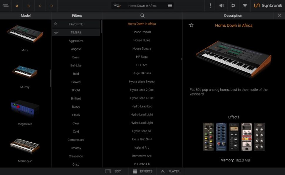 Die italienische Softwareschmiede von IK Multimedia hat das Angebot an virtuellen Synthesizer-Emulationen in ihrer neuen Sammlung Syntronik 2 um elf Stück in der Max-Version auf insgesamt 33 ausgeweitet. Umfassende 200 GB an Soundinhalten und über 5000 Presets sind in dieser Kollektion gebündelt. Zu den Synthesizer-Neuzugängen zählt unter anderem Megawave, ein Waldorf Microwave-Nachbau, sowie der M-12 als Klon des Oberheim Matrix-12.