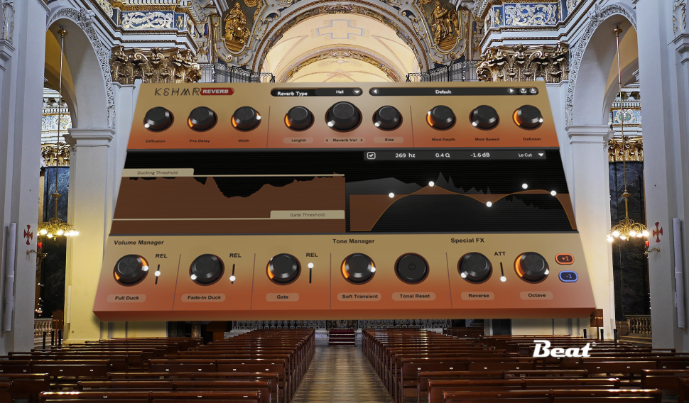 Nach dem Erfolg seines Drum-Plug-ins präsentiert der DJ und Produzent KHSMR sein neuestes Effekt-Plug-in KSHMR Reverb, das gemeinsam mit W.A. Production entwickelt wurde. Zu den gewöhnlichen Reglern wie Diffusion, Breite, Länge und Größe, ist auch ein 6-Band Equalizer als Klangregelung für die Hallfahne mit an Bord. Das Formen des Nachhalls übernimmt der Volume-Manager mit den dazugehörigen Reglern Ducking, Fade-In und Gating.