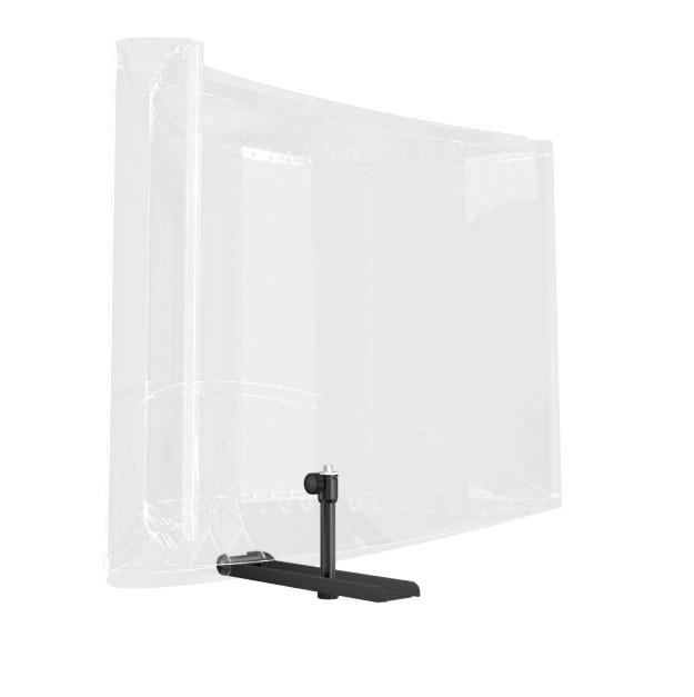 Der Xorber X 7 ist für einen Mic-Screen vergleichsweise groß. Dank der verwendeten Bauteile ist er trotzdem federleicht, weshalb man ihn in den unterschiedlichsten Positionen aufbauen kann. Abgesehen von seinem Metallfuß, der die Anbringung an einem Mikrofonstativ in verschiedenen Neigungswinkeln ermöglicht, ist der Absorber komplett aus Kunststoff beziehungsweise Folie gefertigt. Die hintere Wand wurde etwas steifer konzipiert als die vordere, um Stabilität zu gewährleisten. Beide sind perforiert, wodurch Schall in mikroskopisch kleine Wirbel aufgelöst wird. Die zwischen den Wänden befindliche Luft dient als Resonanzabsorber. Das Design ist klanglich auf die menschliche Stimme hin optimiert. Wem der Grundklang nicht zusagt, kann Absorptionsspektrum und -stärke durch zusätzliche, im Lieferumfang enthaltene Folien abwandeln.