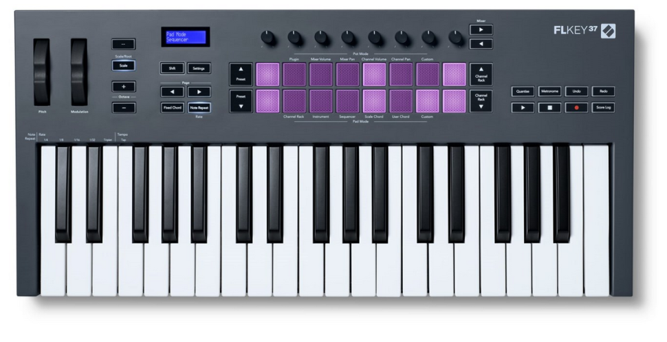 Novation hat mit dem FLkey 37 einen MIDI-Keyboard-Controller entwickelt, der speziell an die FL Studio DAW angepasst wurde. Trotz der kompakten Bauweise verfügt das Tasteninstrument über 37 anschlagdynamische Tasten in Normalgröße. Als kleineres Modell gibt es den FLkey Mini mit 25 Tasten.