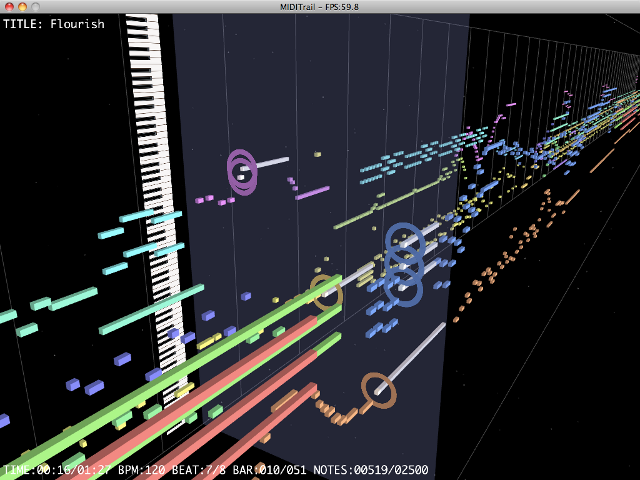 Es gibt virtuelle MIDI-Keyboards als Steuereinheit, es gibt Software, die aus MIDI-Daten Klänge erzeugen kann und es gibt MIDITrail, ein kostenloser MIDI-Player, der den MIDI-Strom auf kreative Weise dreidimensional visualisiert. Das Tool stammt vom japanischen Unternehmen OSDN und läuft unter Windows, Mac und iOS.