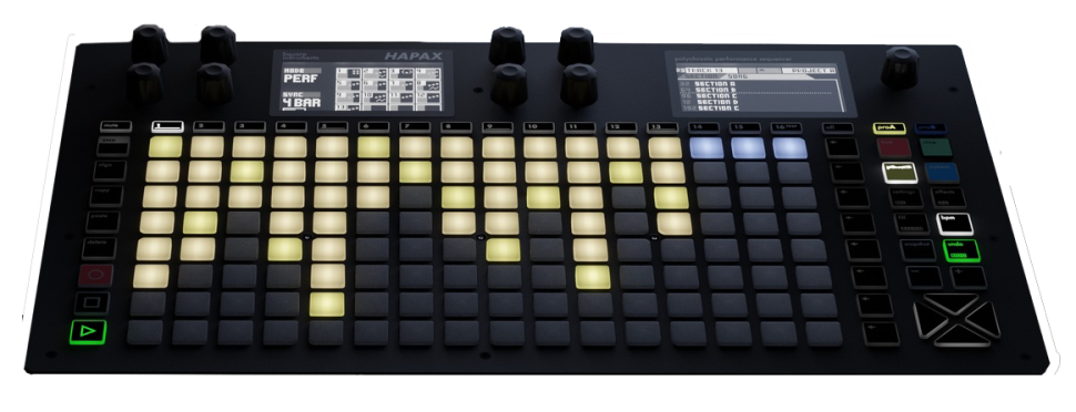 Als neuen Standalone-Sequencer Hapax will Squarp Instruments die Studios erobern. Das MPE-fähige Standalone-Gerät will dabei durch einen intuitiven Workflow überzeugen. Hauptaugenmerk ist die 16x8 große Matrix mit beleuchteten RGB-Pads. Diese sind umrahmt von zwei OLED-Displays, sowie neun Endlos-Drehreglern und 52 Funktionstasten.